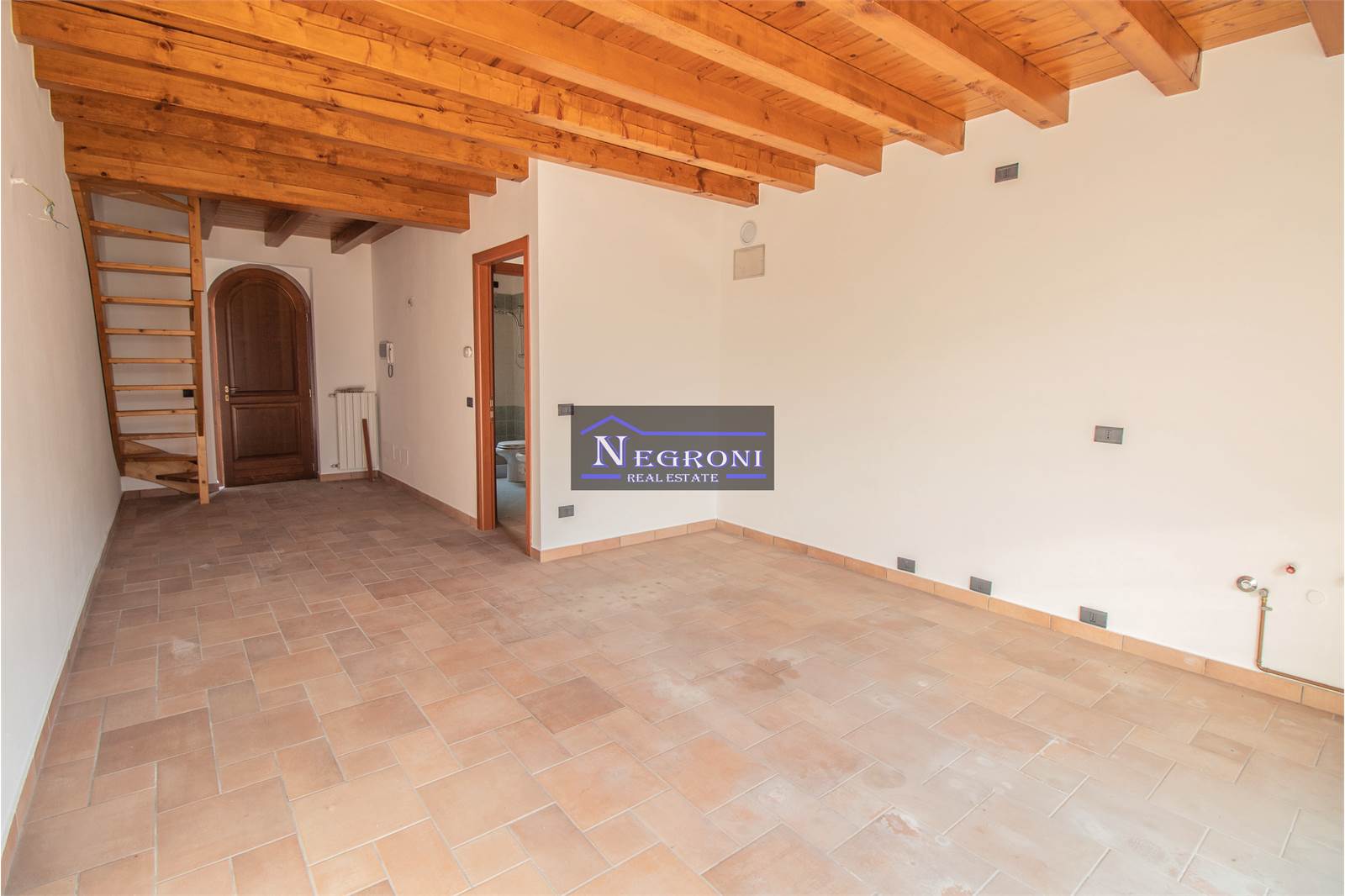 Located on the first/second floor of a recent building, it is internally composed of: entrance, large and spacious open-space living area customizable according to your needs, hallway with space for a washing machine, bathroom, and two balconies. Through a wooden staircase, you reach the sleeping area consisting of two rooms: a master bedroom with a livable/sun terrace; an accessory/attic room with a skylight, ideal as a small bedroom.