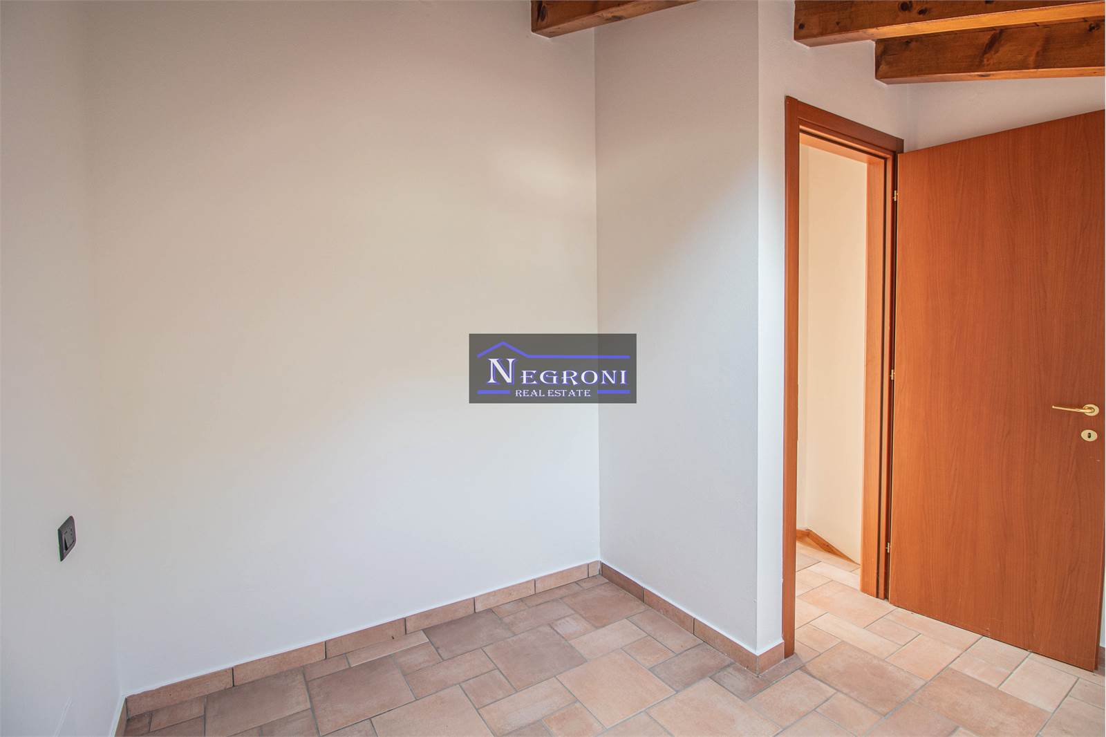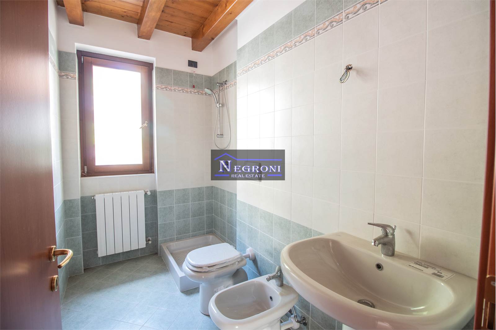 The solution is characterized by exposed beams on both floors, making it cozy and charming with a mountain feel. It is equipped with an intercom, security door, wooden windows with triple glazing and tilt opening; it is thermally independent and equipped with a predisposition for a wood-burning fireplace that would make the environment even more rustic and warm.