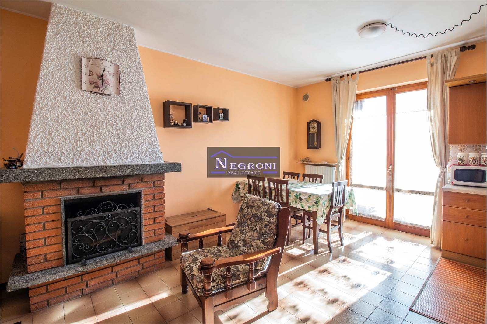 Internally, it consists of: a welcoming living area embellished with a wood-burning fireplace, an open kitchen, balcony, a large bedroom with a double bed and a built-in wardrobe with an additional bed, a complete and windowed bathroom. Currently, the apartment accommodates 6 beds.