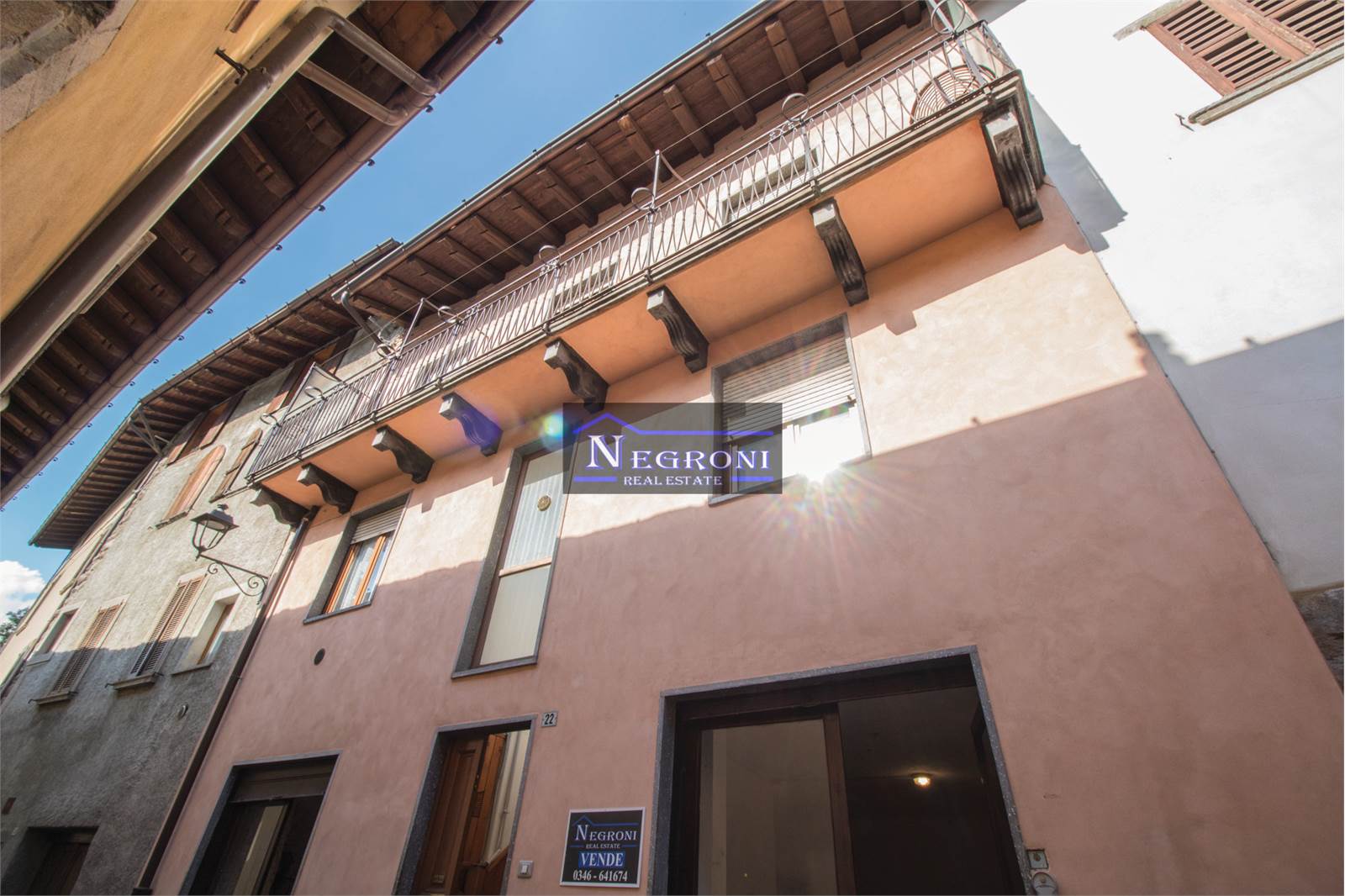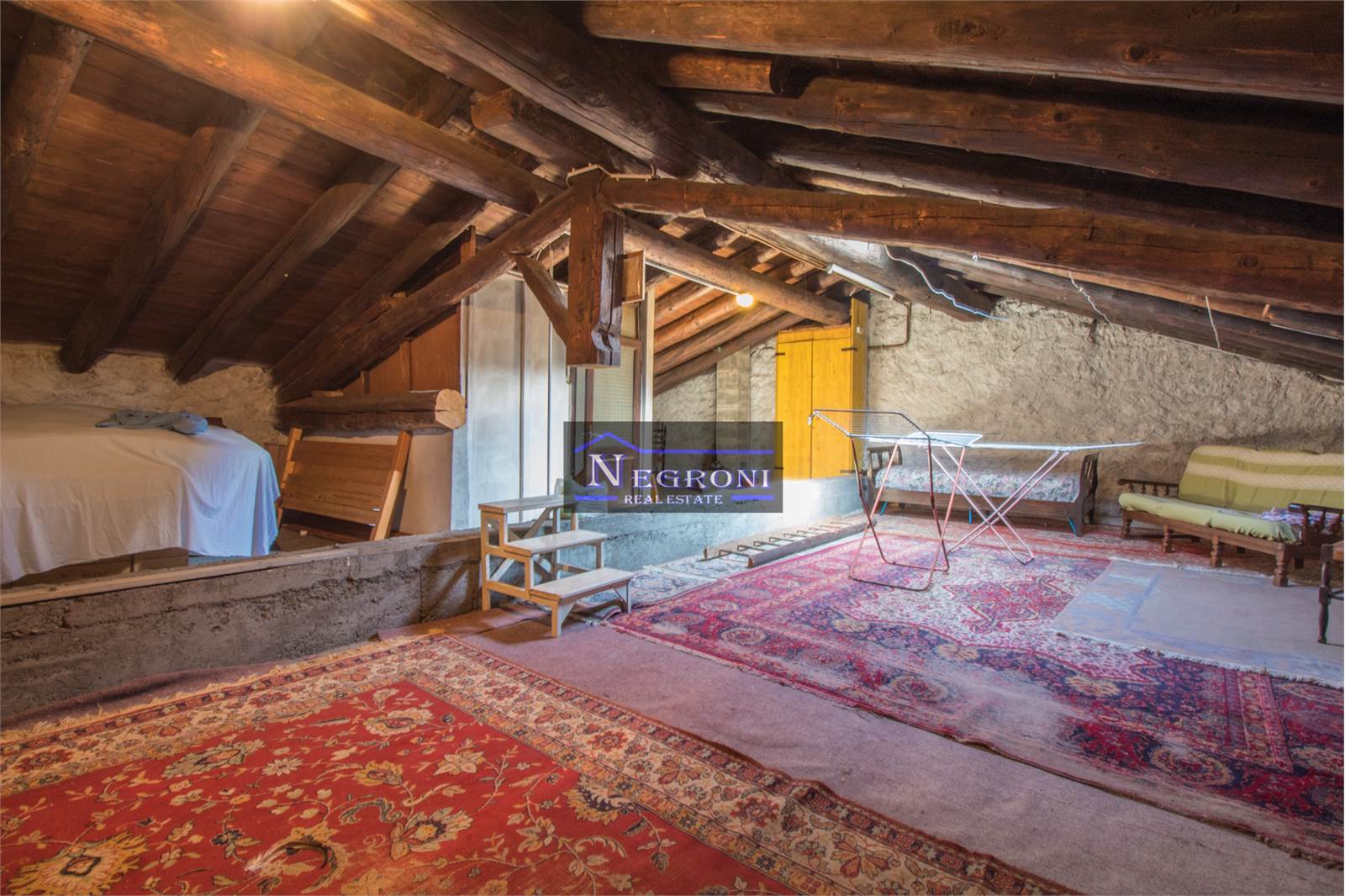 Inside the medieval village of Gromo, one of the most beautiful villages in Italy located in the Upper Seriana Valley, for sale a sky / land house on three levels. On the ground floor there are two rooms facing the street, one of which is used as a cellar, with a characteristic vaulted structure while the other as a garage. On the first floor there is a living room, a large eat-in kitchen with a pallet stove and a closet with the possibility of creating a second service. An internal staircase leads to the second floor consisting of 4 bedrooms, 3 of which are double, large bathroom and balcony with a splendid view over the slate roofs of the historic center and the tower of the Ginami Castle. The internal staircase then continues into the attic floor where there is an open space room. The property is in good condition: windows, roof, facades and electrical system have been redone in recent years.