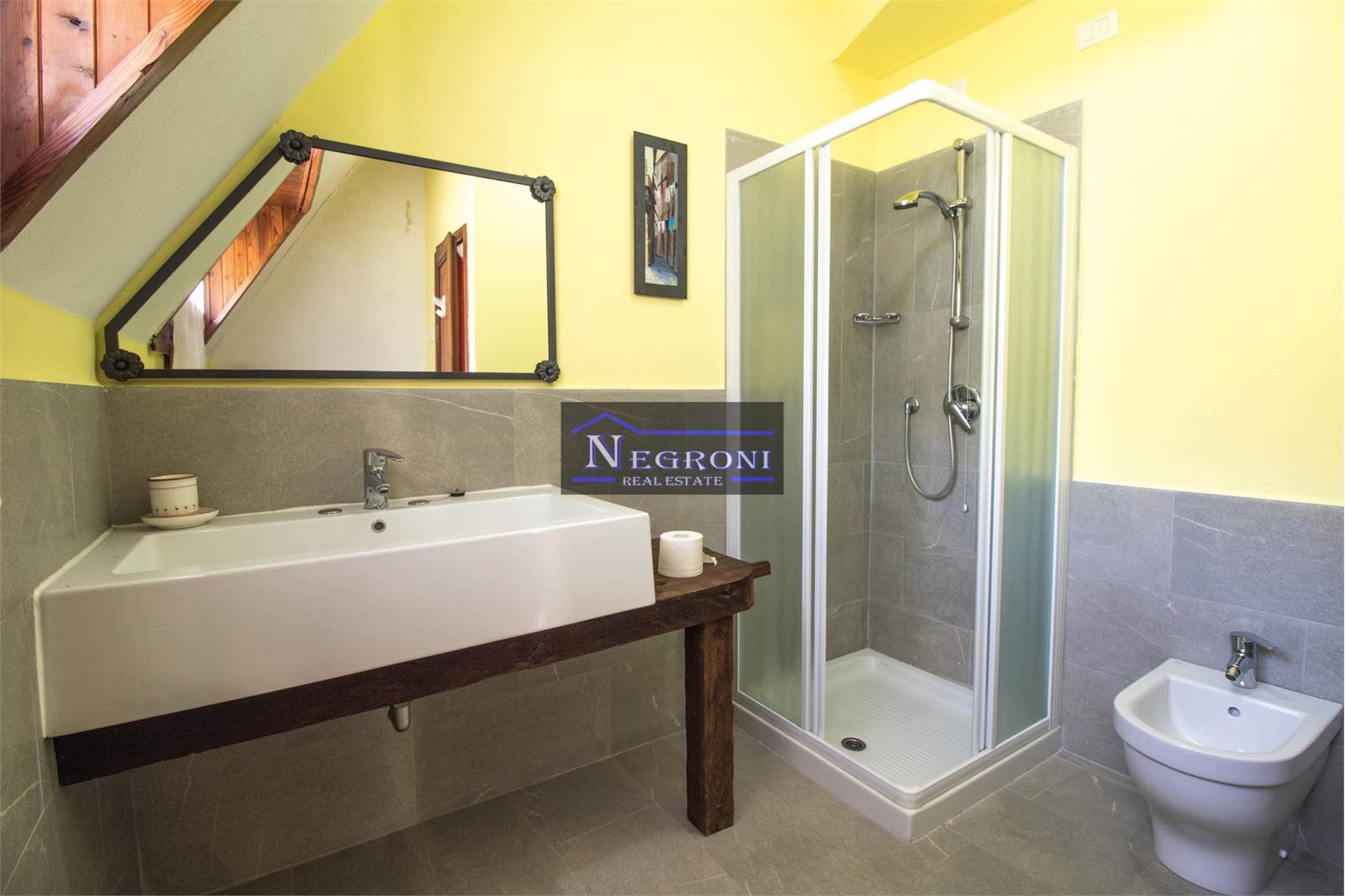 - on the second floor, which is accessed by a wooden staircase, there are two double bedrooms, one with a panoramic balcony, the second bathroom and a large mezzanine hallway overlooking the living room.