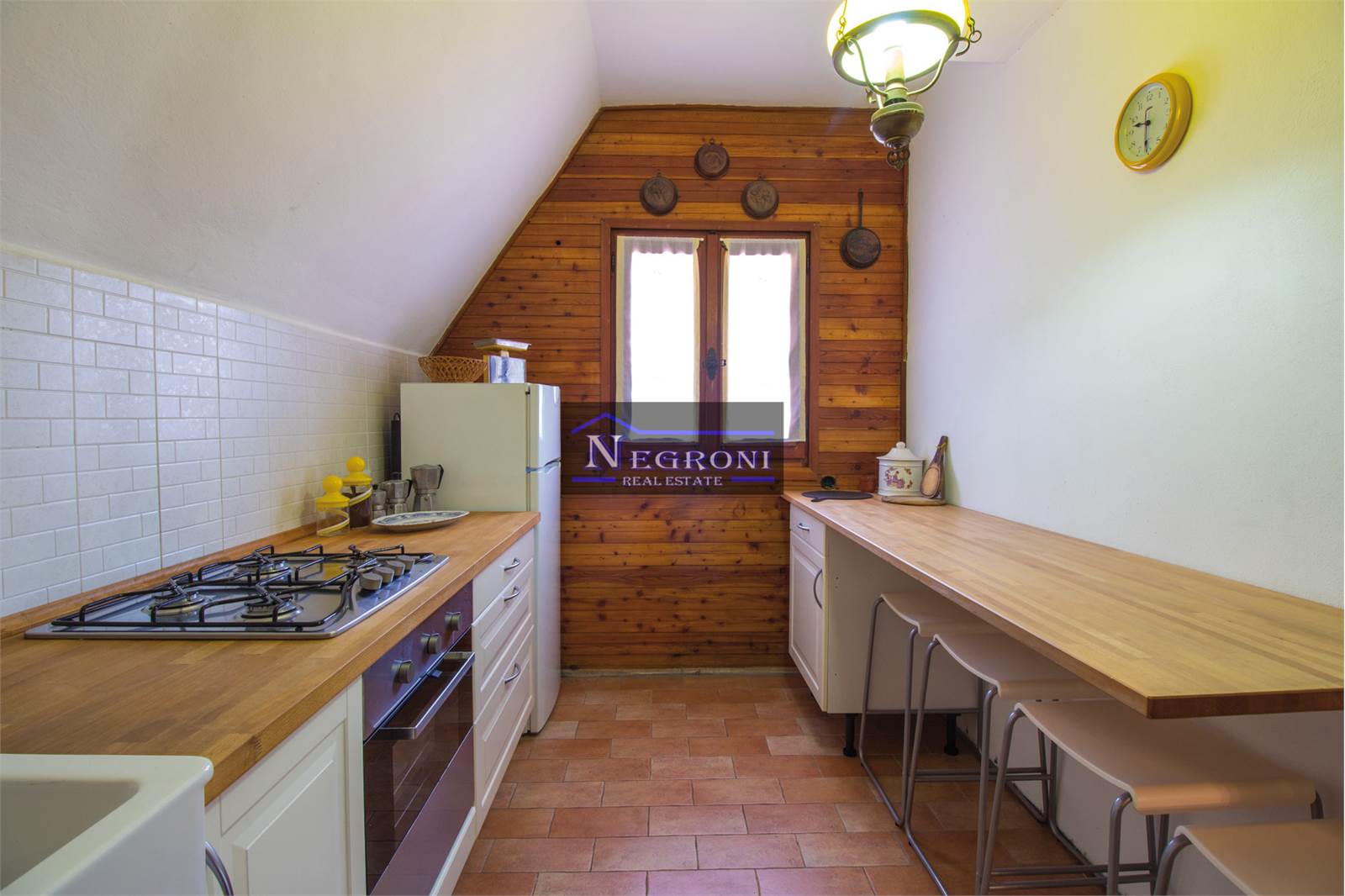 In the home there are natural materials such as wood, which almost entirely characterize the solution and which, combined with the satisfying view of the nature that surrounds it, will give you a sense of warmth and psychophysical well-being.