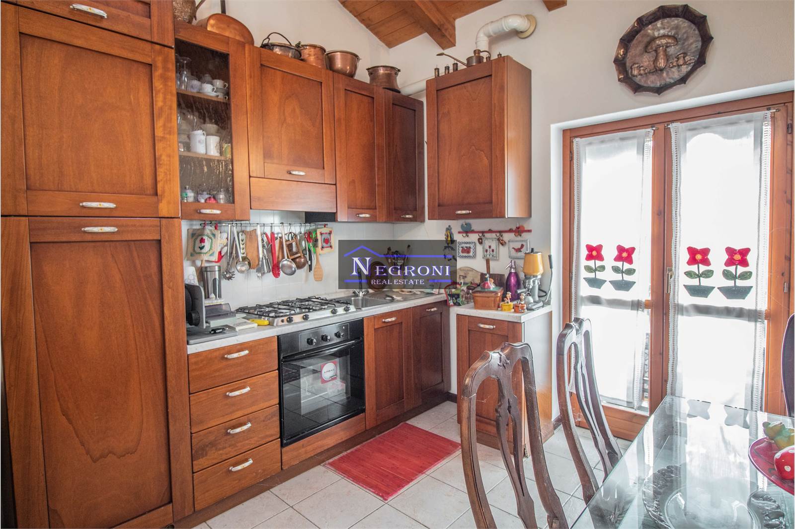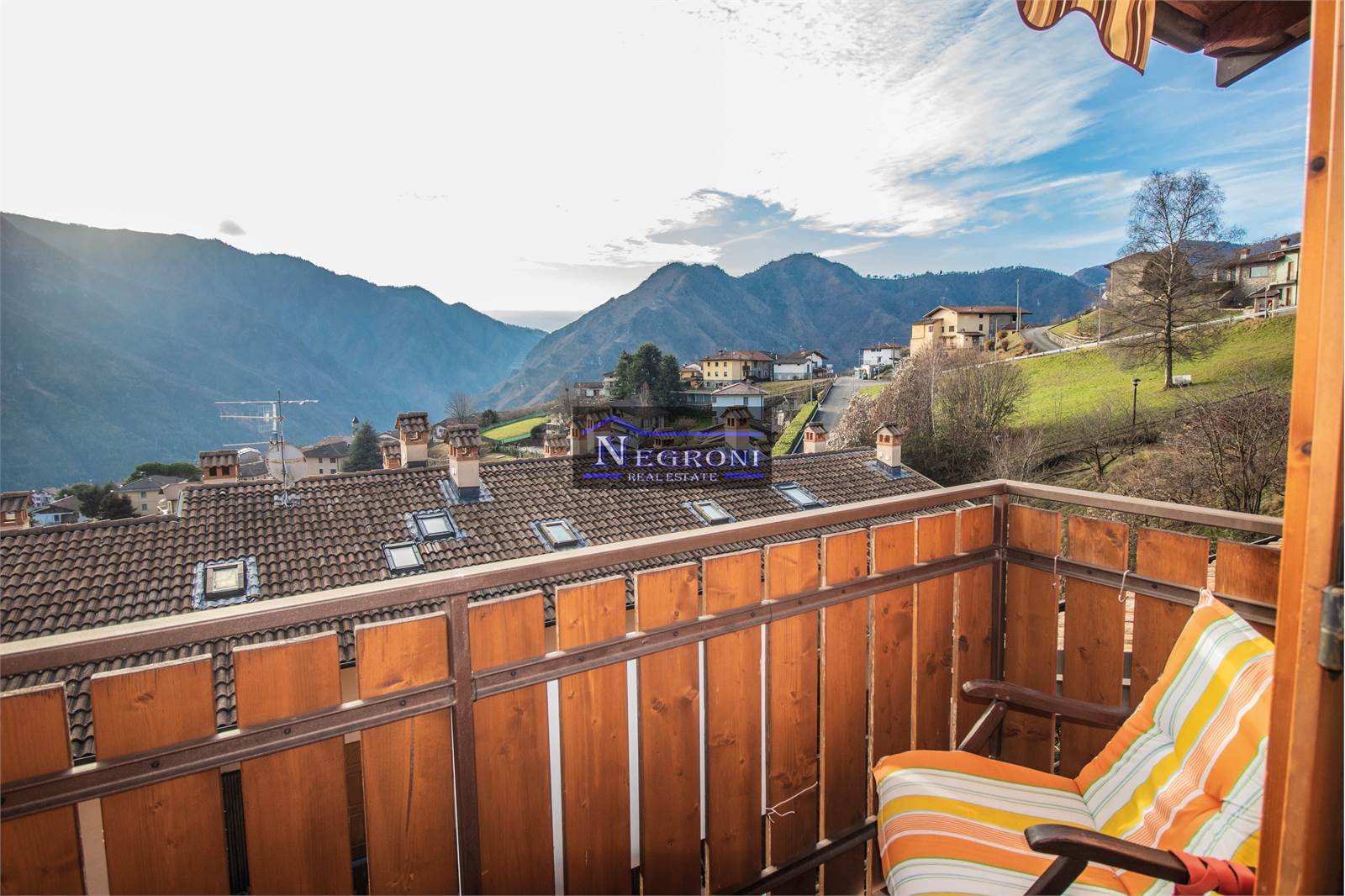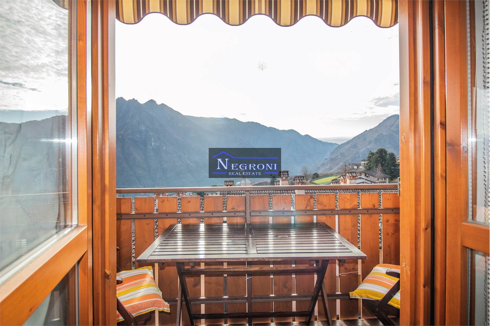The apartment enjoys excellent exposure to the sun and is in excellent condition. Internally it consists of: entrance, living area with a beautiful open wooden kitchen, relaxation area embellished with a stone wood-burning fireplace and access to the panoramic balcony with a beautiful open view of the valley and its mountains, hallway, double bedroom, and full bathroom. The property also includes a single garage.