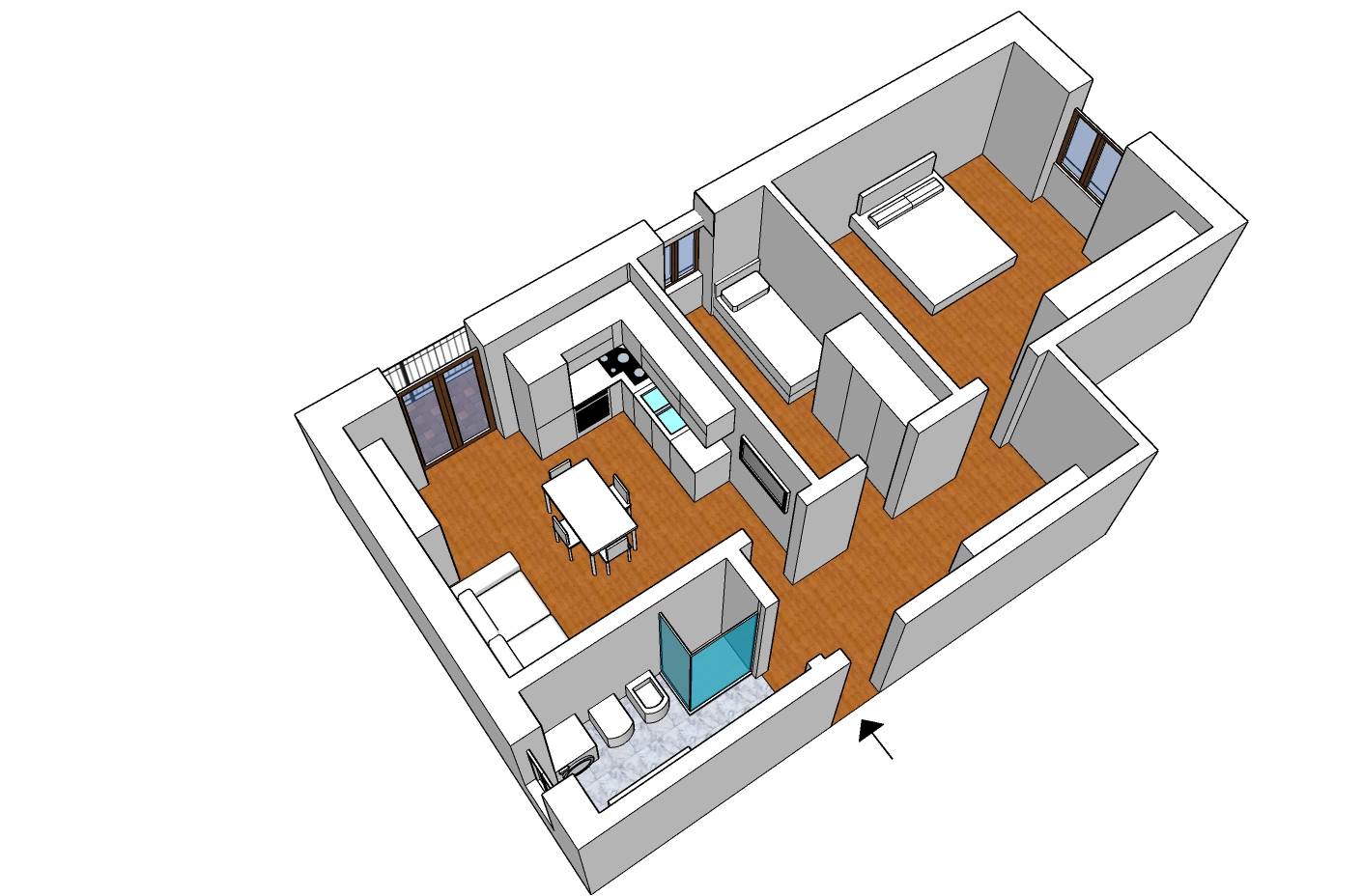 It is currently configured as a two-room apartment with kitchen but there is the possibility of converting it into a three-room apartment with two bedrooms.