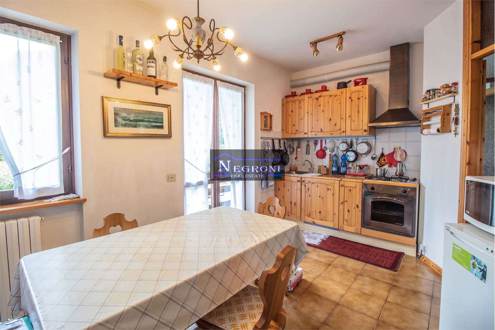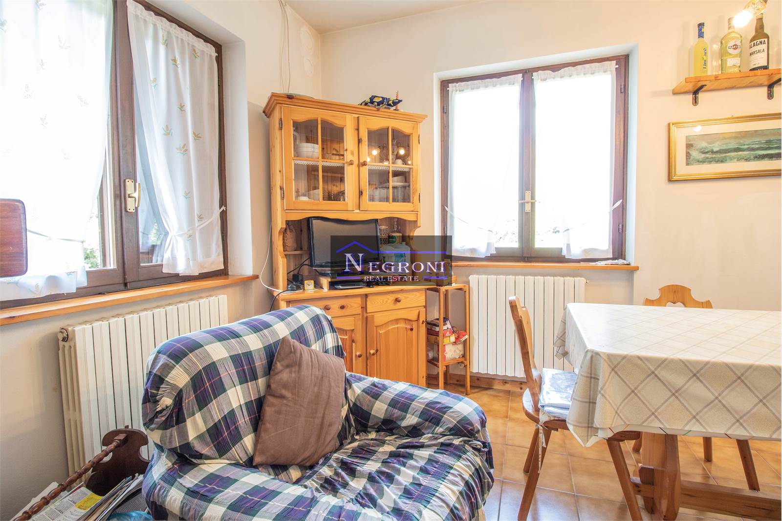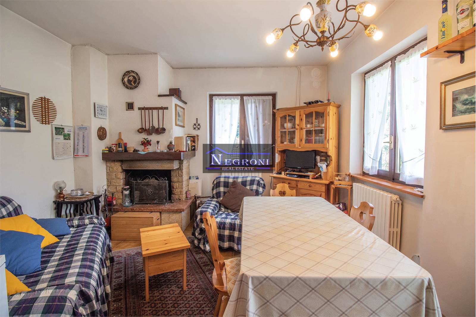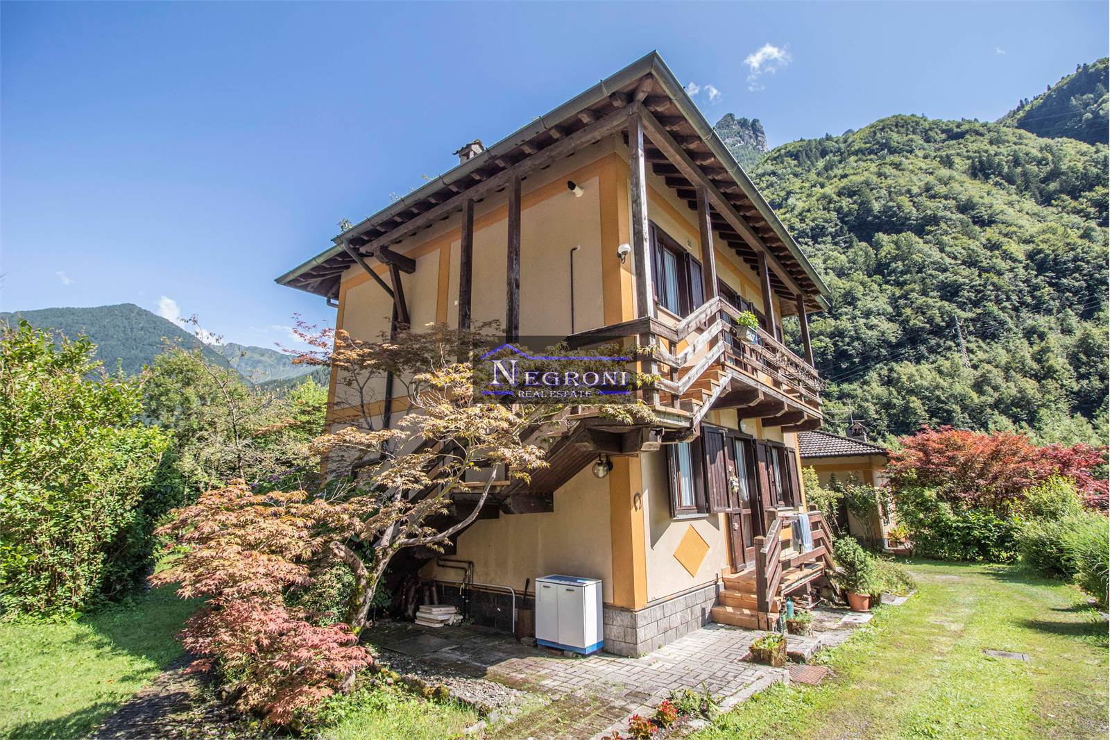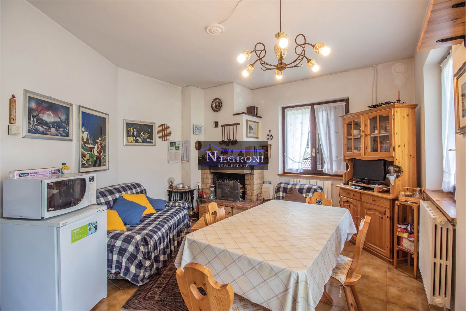 High Val Seriana, province of Bergamo, in the renowned mountain tourist resort of Valbondione (Dossi hamlet), we offer for sale a three-room apartment with an independent entrance, located in a characteristic semi-detached villa and equipped with private gardens.