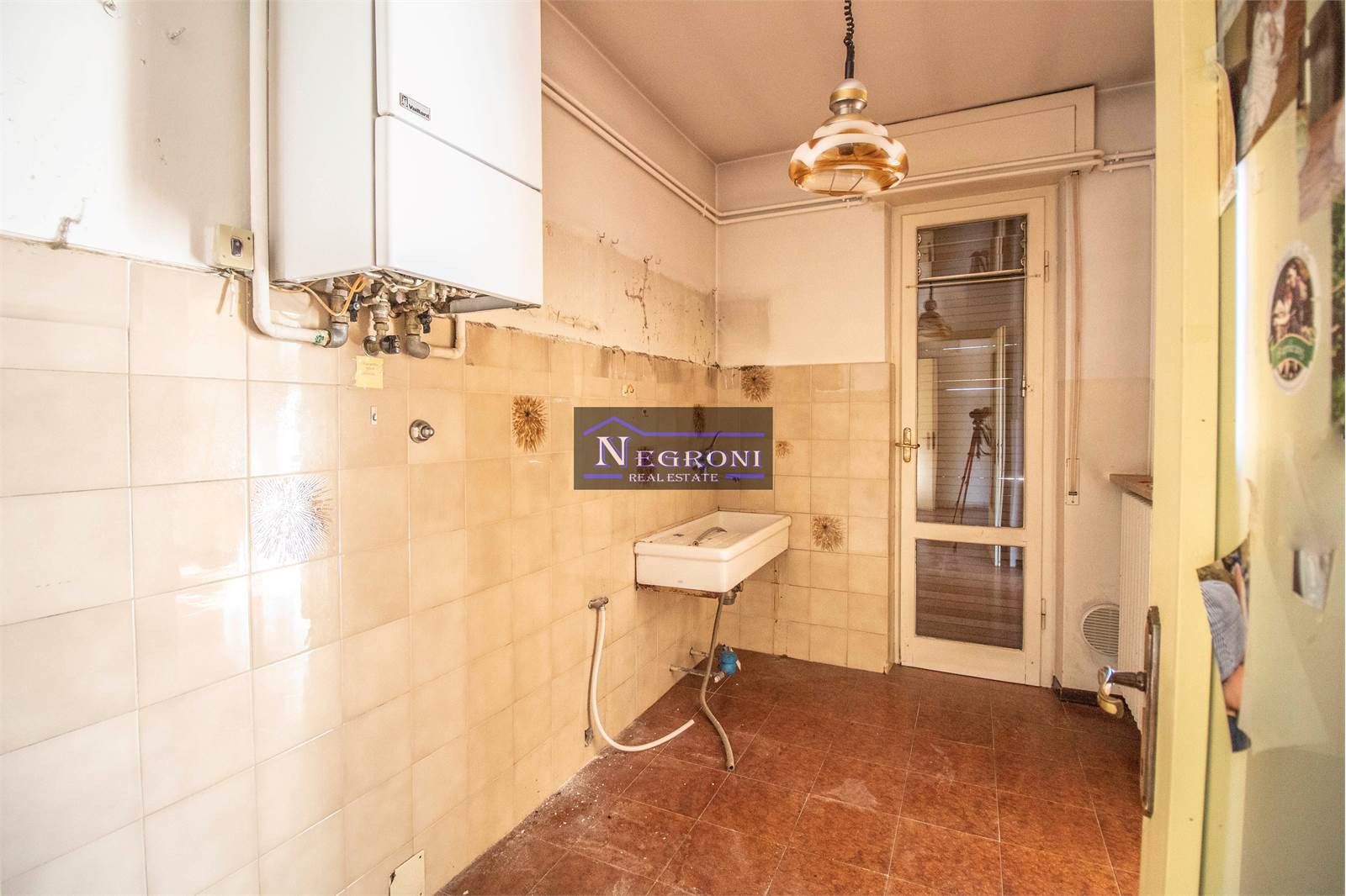 Situato al terzo piano e dotato di riscaldamento autonomo tramite radiatori a metano, è internamente composto da: ingresso, salotto con balcone, cucina separata, 3 camere, disimpegno, bagno e ripostiglio.