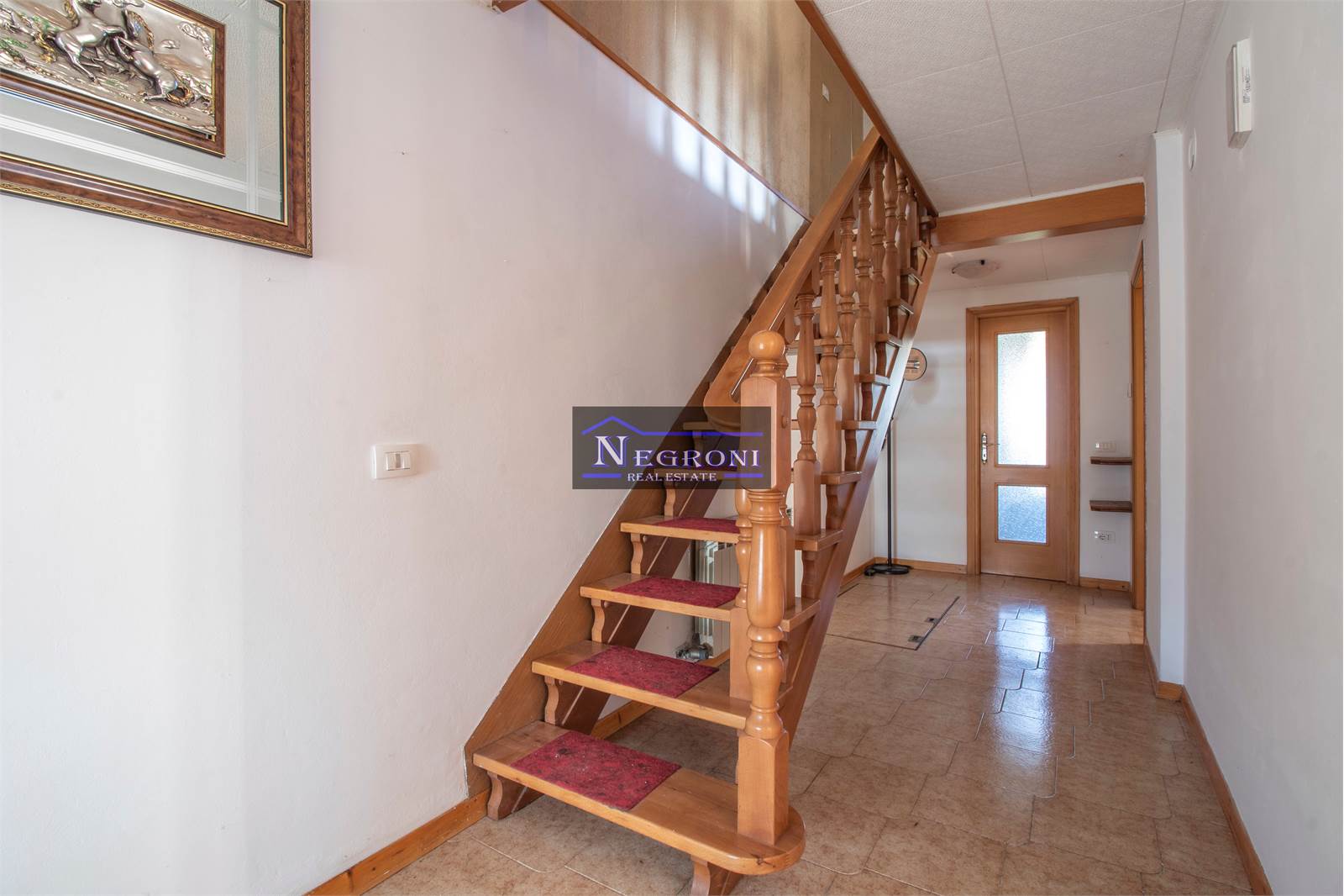 L'immobile internamente è composto da ingresso, soggiorno, cucina abitabile e bagno a piano terra; cantina di ca. 30 mq a piano interrato; due camere matrimoniali, bagno, balcone e porticato comune a piano primo.