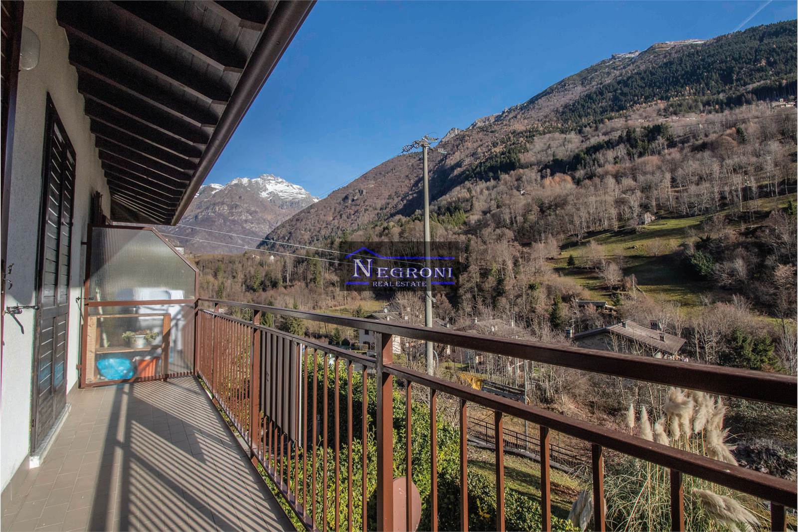 L'appartamento è in ottime condizioni ed è così composto: zona giorno con bella cucina in legno a vista, zona relax impreziosita da camino a legna ed accesso al balcone panoramico di 4 mq con bella vista sul monte Redorta e sulle montagne circostanti, camera matrimoniale anch'essa con accesso al balcone, bagno con doccia.