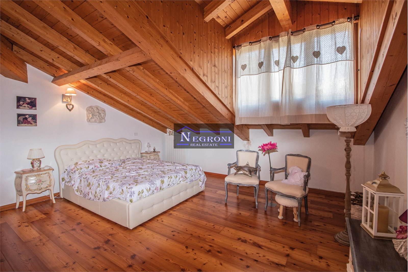 Tramite comoda scala in legno si accede al piano sottotetto dove troviamo un' affascinante camera matrimoniale impreziosita da caminetto a bioetanolo e da finestra panoramica; sempre nella zona mansarda troviamo altro locale attualmente adibito ad altra camera matrimoniale.