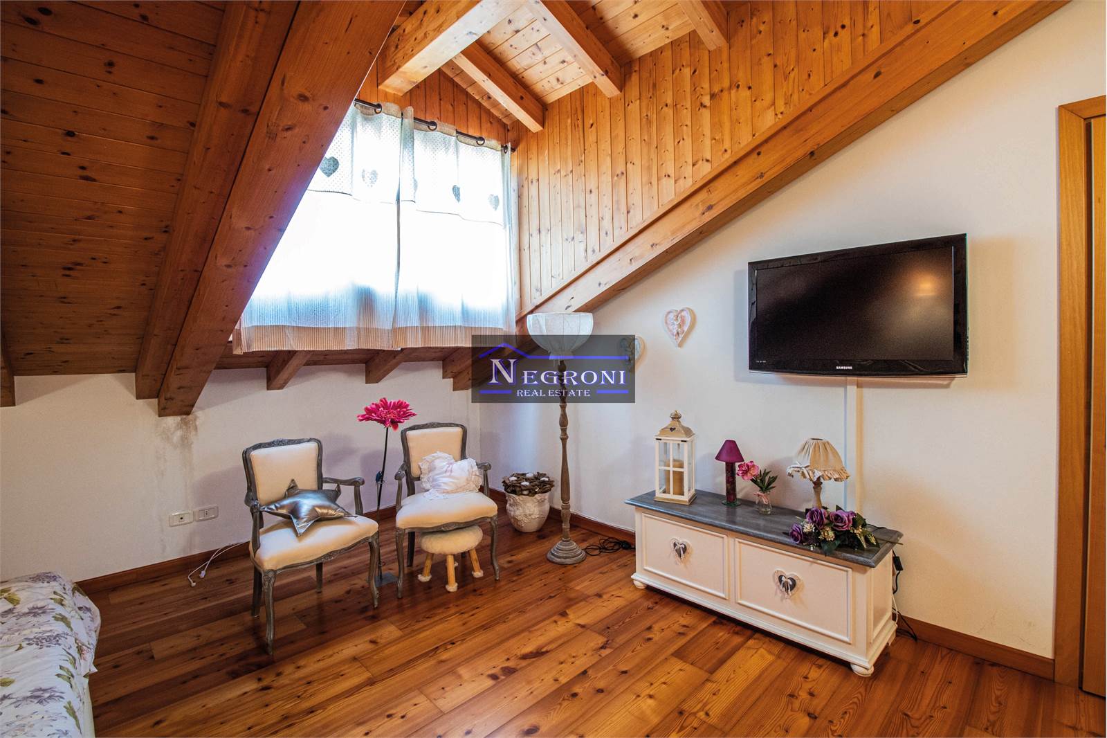 A Gromo, "Piccola Toledo" del Medioevo e Borgo tra i più belli d'Italia, proponiamo in vendita incantevole appartamento duplex situato in palazzo storico del 1900 costruito dalla famiglia Crespi che fondò un asilo al suo interno.