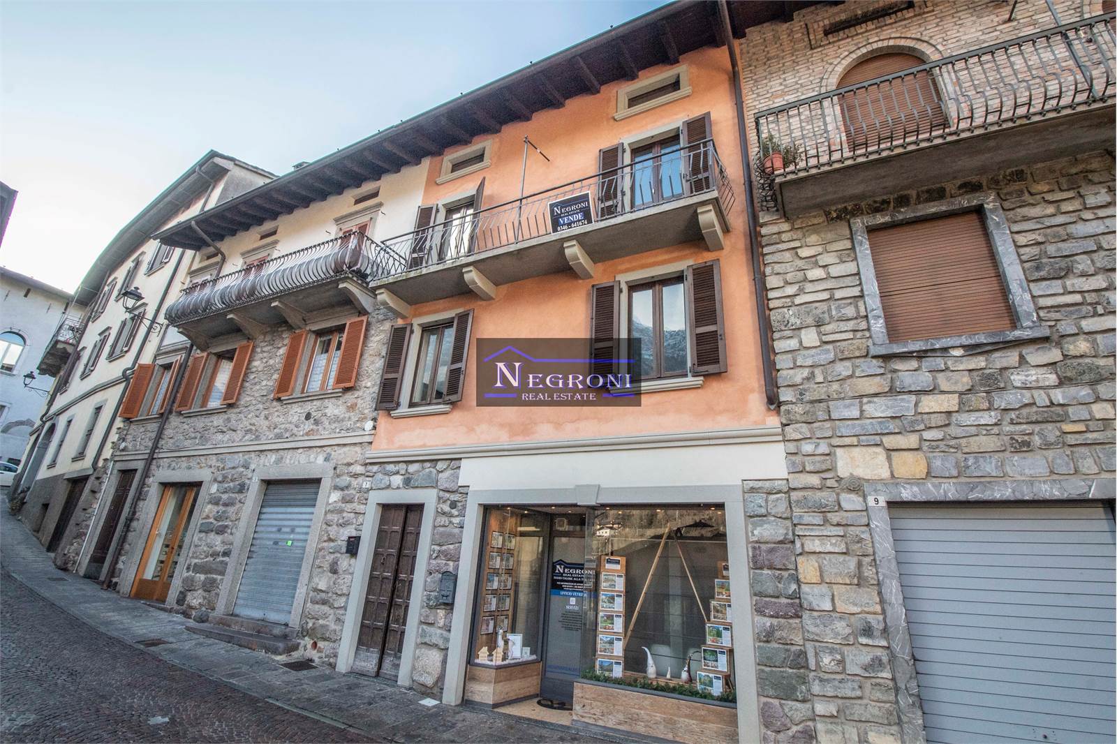 A Gromo, "Piccola Toledo" del Medioevo ed ora Borgo tra i più belli d'Italia, proponiamo in vendita appartamento duplex a piano primo e secondo con balcone panoramico che affaccia sul borgo medievale e sulla vallata. In abbinamento all'appartamento è compreso un negozio/ufficio già a reddito e situato a piano terra.
