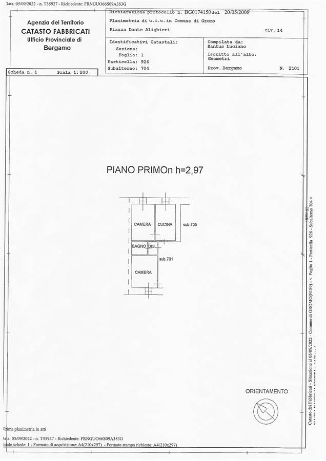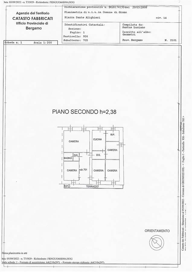 - bilocale di 43 mq composto da soggiorno, cucina abitabile, disimpegno, bagno e camera matrimoniale; anch'esso con affaccio su Piazza Dante.