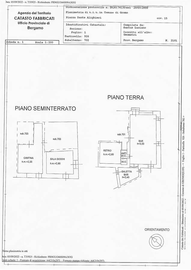 - a piano terra, con ingresso dalla piazza Dante, troviamo ampio locale di 66 mq con ampia vetrina ed altro locale annesso di 12 mq, antibagno, bagno ed ulteriore locale sul retro di 22 mq;
