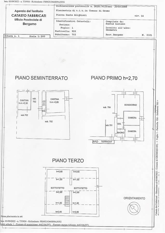 A piano terzo troviamo sottotetto di circa 135 mq con altezza massima di 2,90 metri.