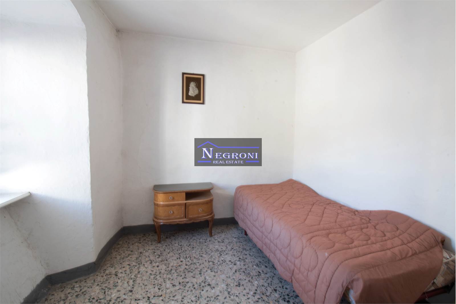 A piano secondo troviamo un unico appartamento di circa 135 mq composto da cucina, 5 camere di cui una molto ampia, due disimpegni, un ripostiglio, bagno e balcone di 11 mq con affaccio sui tetti del borgo medievale, sul castello del Ganaderio e sul Monte Secco.