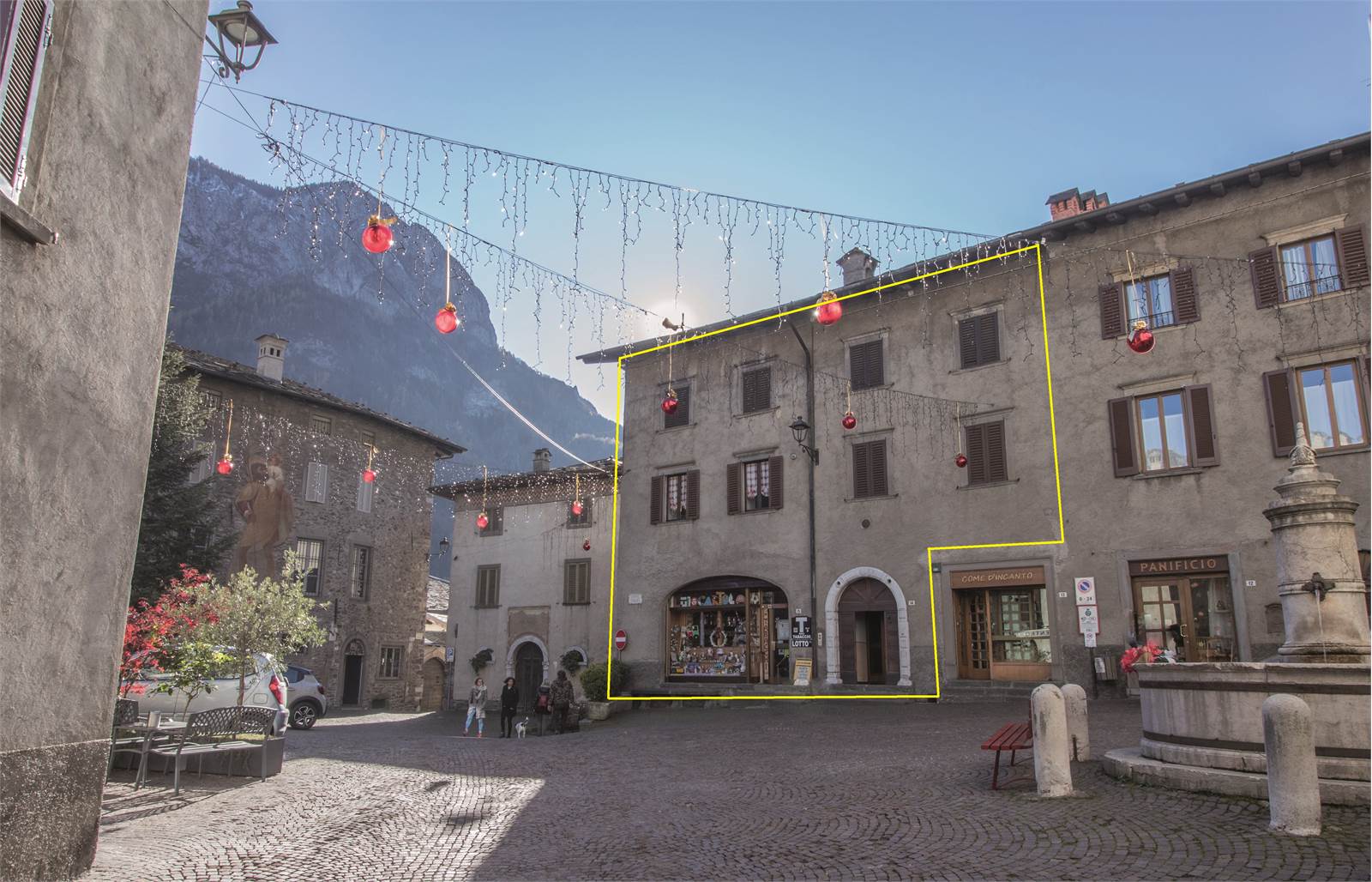 Gromo, con affaccio sulla piazza principale del centro storico medievale, tra il Castello Ginami ed il Palazzo Comunale, soluzione abitativa su tre piani fuori terra oltre a soluzione commerciale a piano terra e seminterrato.