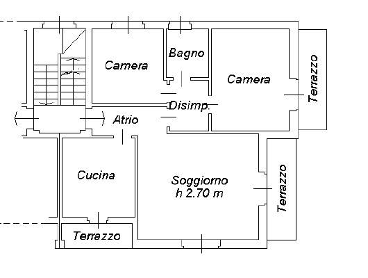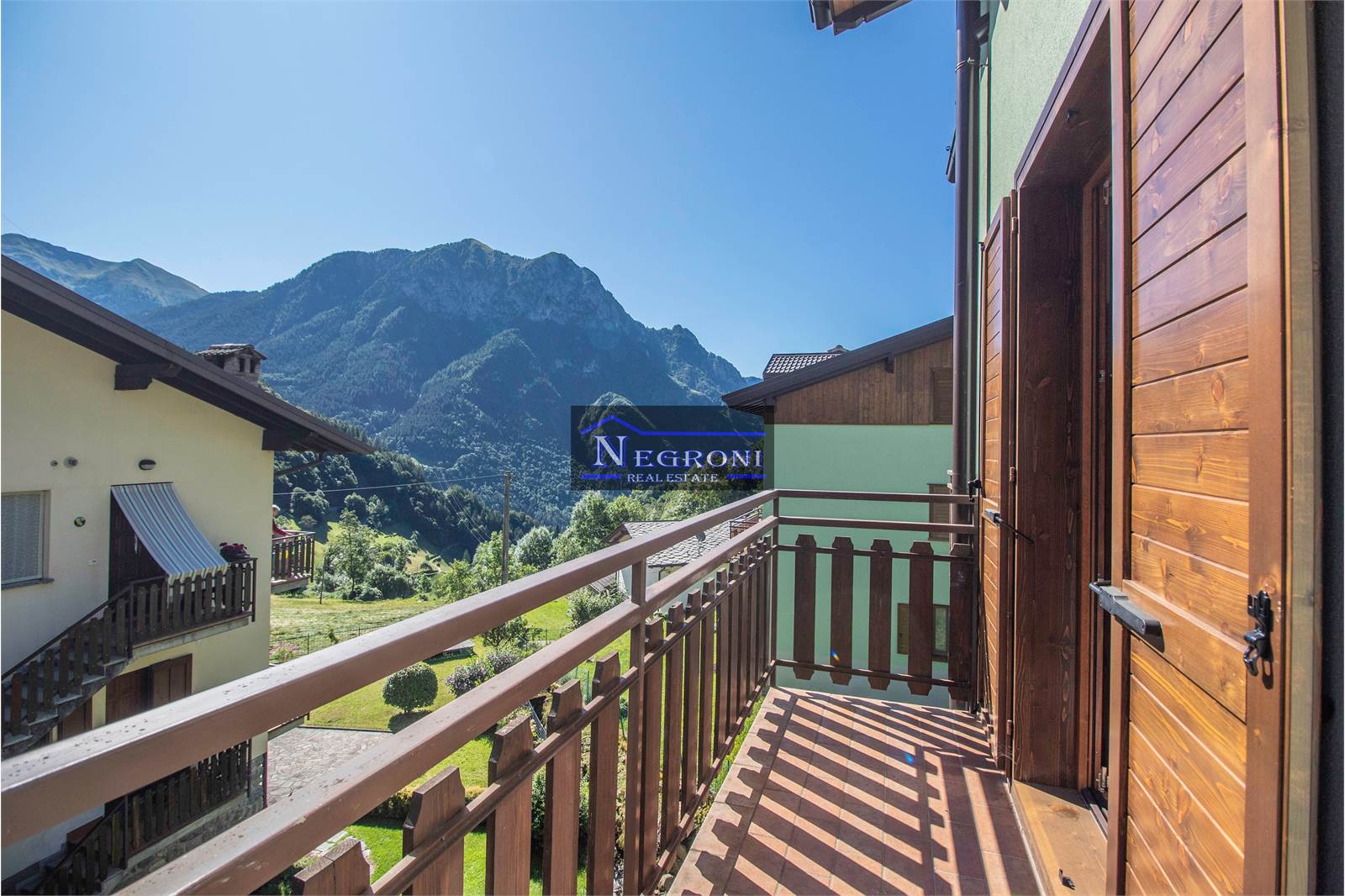 Internamente è composto da ingresso, soggiorno con camino, cucina abitabile, disimpegno. due camere, bagno e tre balconi e con splendida vista sulle montagne!